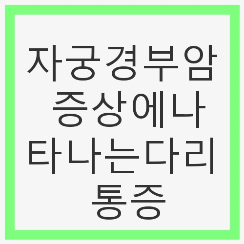 특히, 다리 통증은 자궁경부암의 진행 상태에 따라 발생할 수 있는 여러 증상 중 하나로, 이는 종양이 주변 조직을 압박하거나 림프관을 방해할 때 발생합니다. 이러한 증상이 나타난다면 즉시 병원을 방문하여 정확한 진단을 받는 것이 중요합니다.